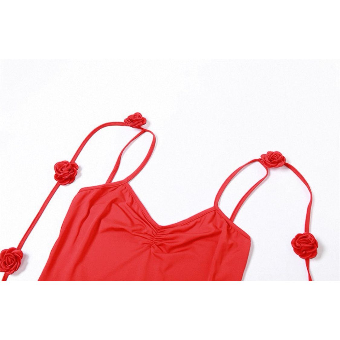 Verspielte Rosen-Details entlang der Träger für einen romantischen Look