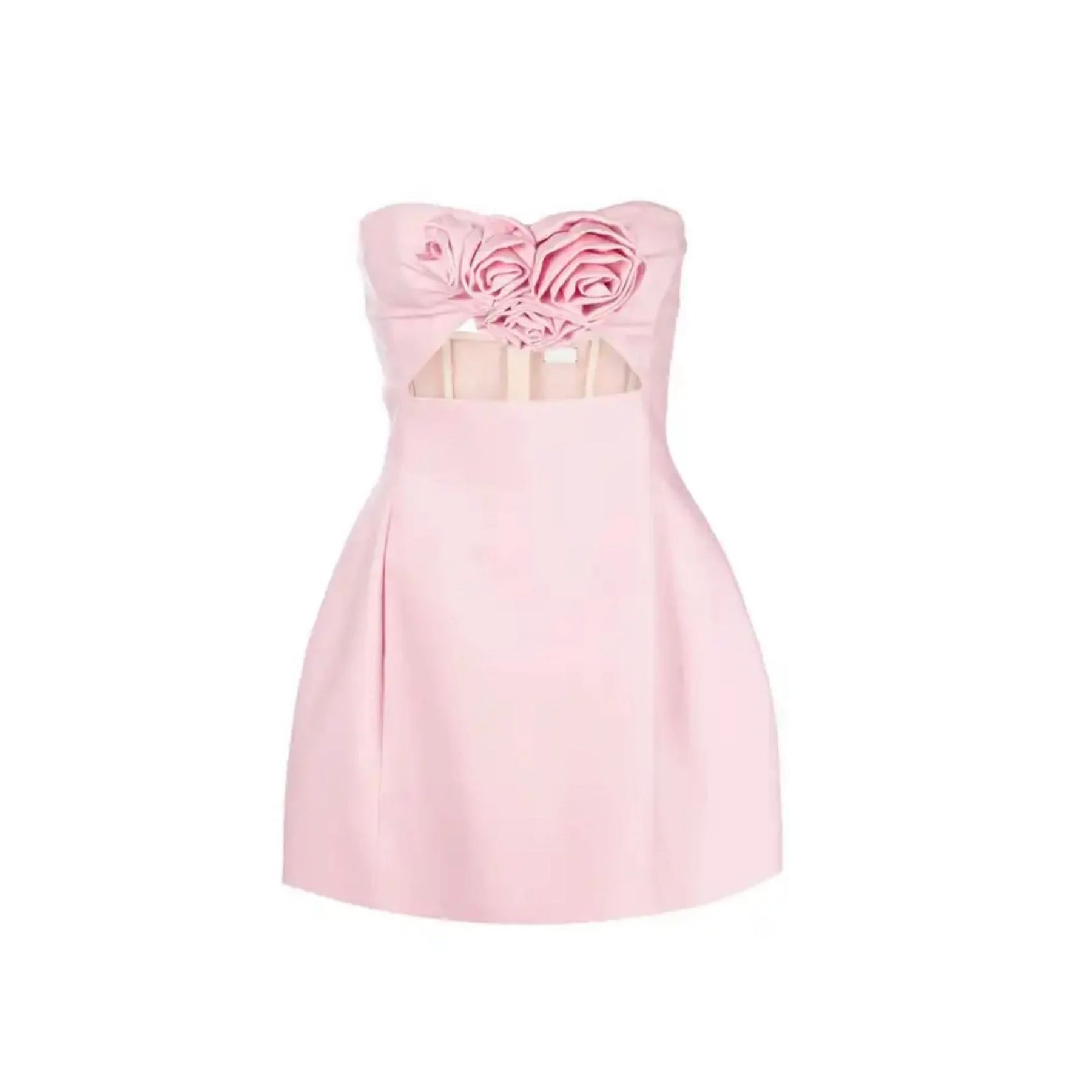 Seraphina ist ein luxuriöses Minikleid, das feminine Sinnlichkeit mit avantgardistischer Eleganz vereint. Das edle Material schmiegt sich perfekt an deine Figur, während die kunstvoll gearbeiteten Rosen-Applikationen am Bustier wie ein Couture-Statement wirken. Der markante Cut-out unterhalb der Brust setzt einen modernen, verführerischen Akzent und macht das Kleid zu einem Highlight jeder exklusiven Garderobe.